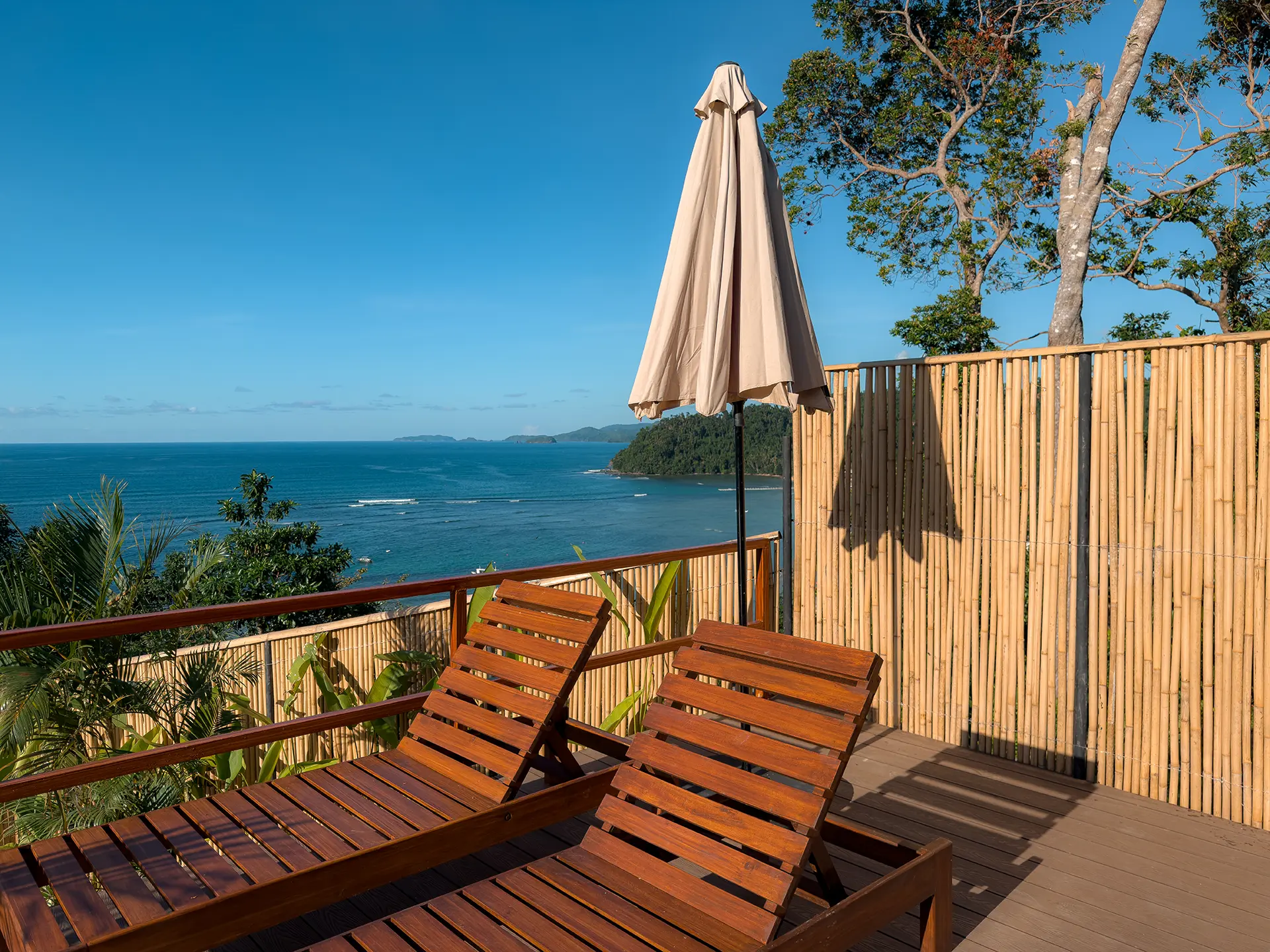 A hilltop sanctuary with panoramic views of all Caadlao and El Nido, featuring a private pool and balcony equipped with two sunbeds.